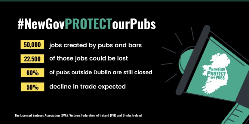 Many are stating that the Rural pubs will feel the brunt of this burden of not being able to open, which can’t be refuted. However if the word coming from the City Centres is anything to go by, the Bars and Restaurants here have just as tough a battle, and in the majority of cases are supporting significantly more jobs than those in rural areas. The venues who have relied on tourism for a significant portion of their revenue have been decimated by the loss of this custom and now have to deal with endless amounts of no-shows, and also gobshites trying to expose venues they feel aren’t adhering to the guidelines fully. And the shame in all of this is that those attempting to expose venues seem to be doing it where the Proprietor is doing their very best to adhere to the rules, and yet the many pubs throughout the Cities who are flouting the rules entirely, nothing is being said at all. Our hospitality industry needs help now: